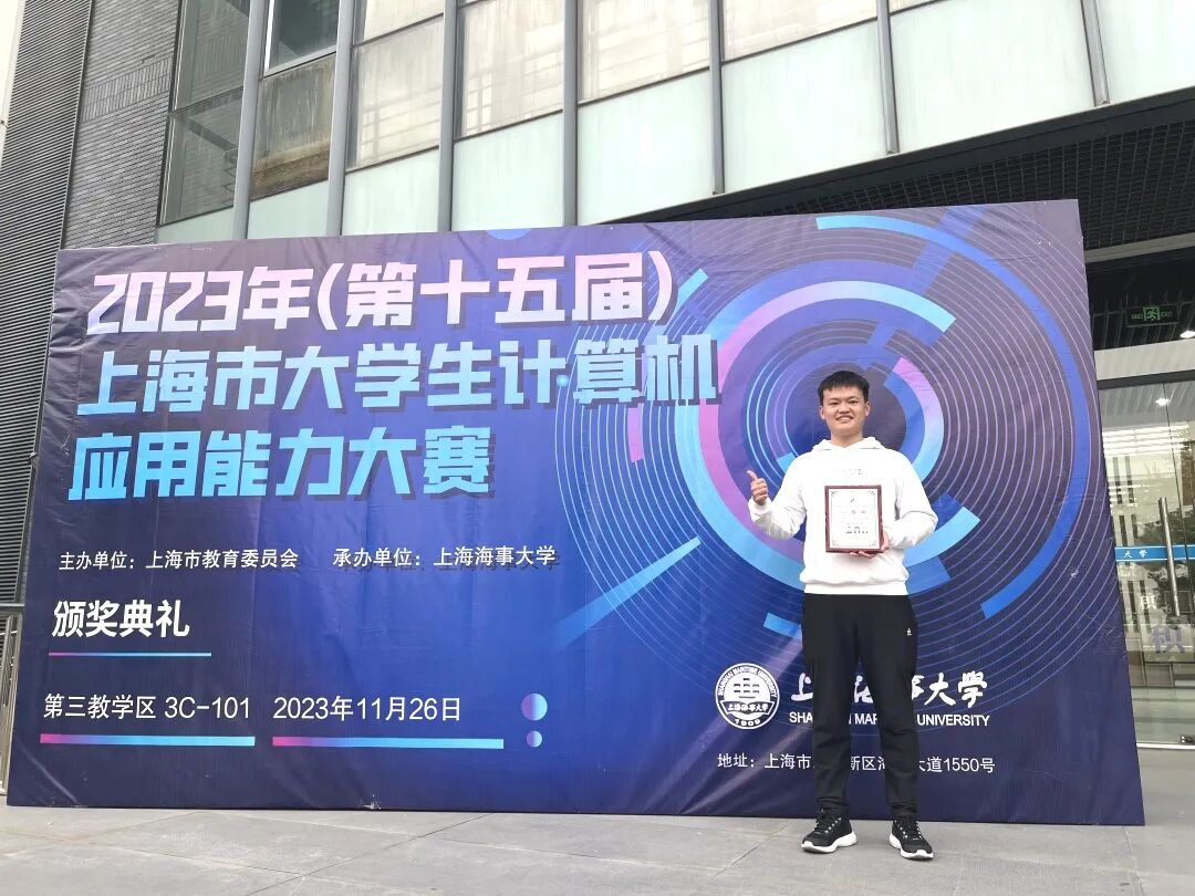 张国辉在班导师杨建国老师的建议下,积极参加各类课外创新实践及编程比赛——获得中国大学生计算机设计大赛全国二等奖、上海市大学生计算机应用能力大赛二等奖、“蓝桥杯”全国软件和信息技术专业人才大赛上海赛区C/C++程序设计三等奖等多个奖项。
