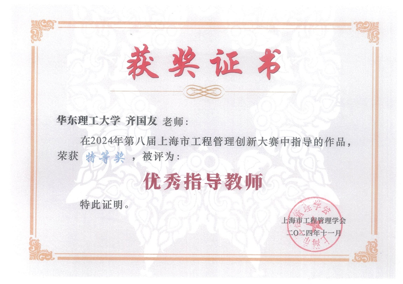 再次祝贺获奖同学,希望同学们继续践行华理商学院“知行合一”的培养理念,积极参与实践类和创新类赛事,不断提高专业素养和创新精神,成为能有效应对未来挑战的杰出工程管理人才。