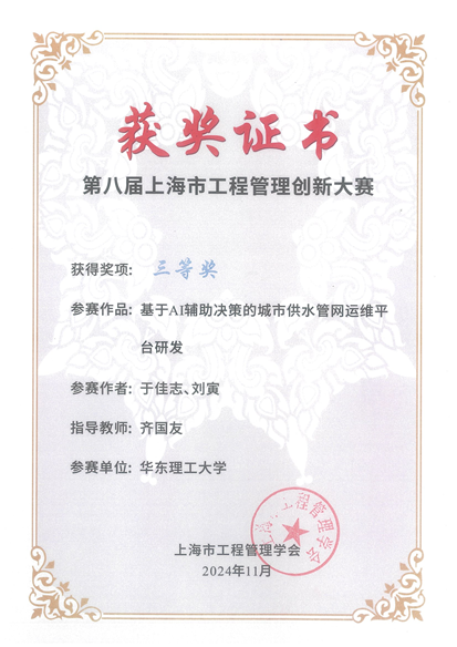项目名称:《基于 AI 辅助决策的城市供水管网运维平台研发》