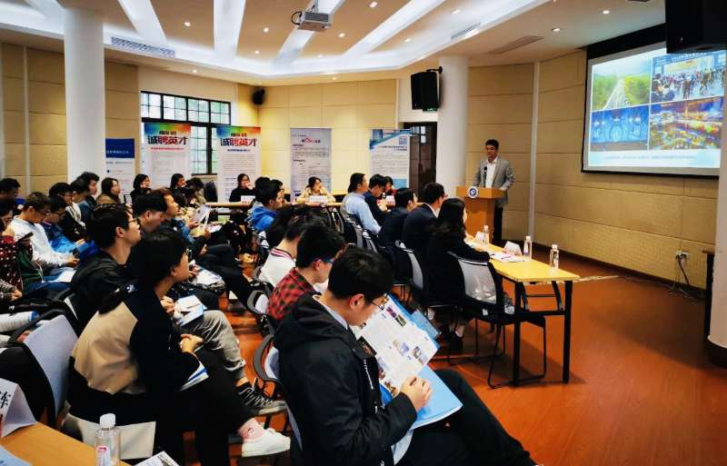 在播放推介宣传片后,贾晨全方位介绍了溧水区。他表示,溧水区委、区政府将以最优惠的政策、最优质的服务,提供实现人生价值的理想平台和创业环境。他用“枢纽”“腾飞”“健康”“创新”“圆梦”5个关键词对溧水区的交通、经济、环境、文化等方面作了介绍,并真挚发出邀请,期望毕业生到溧水区就业创业,希望溧水区能与我校有更多的交流合作。
