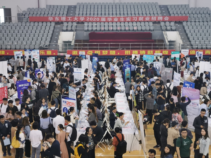 5月17日下午,我校2020届毕业生实习就业招聘会在奉贤校区体育馆举办。上海医药、上海电气、华谊集团、上汽集团、中国工商银行、中国铁塔、中国石油天然气管道、拜耳、西门子、汉高、建发集团、伊利、液化空气、辉瑞制药、携程、海康威视、诺华制药、赢创等涉及化工、制造、互联网、金融等100余家重点企业报名参会,提供岗位3300余个,参会单位质量大幅提高,其中世界500强企业占27.69%,中国500强企业占33.08%。从行业分析看,制造业为52.31%,信息传输、软件和信息技术服务业为23.85%,科学研究和技术服务业为3.85%,基本覆盖了我校各专业。本次招聘会主要面向我校2020届毕业生,约2000余名学生参加了招聘会。