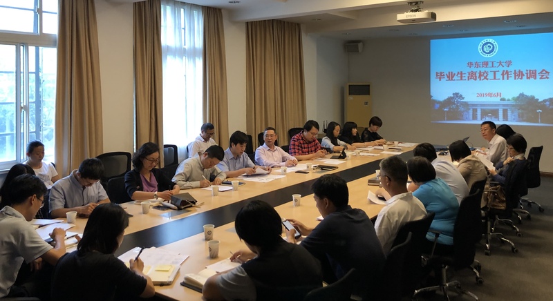 6月13日下午,2019届毕业生离校工作协调会在徐汇校区和平楼第一会议室召开。党委副书记宋来主持会议,组织部、学工部、团委、研工部、教务处、财务处、后勤保障处、保卫处、图书馆等职能部门负责人及各学院学生工作负责人参加了会议。