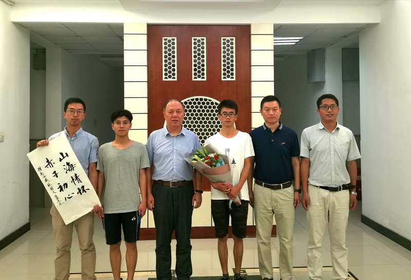 郑东肯定了理学院的基层就业工作,并介绍了学校今年援疆援藏就业情况,嘱托张国文要劳逸结合、做好心理调适、加强交流学习,在岗位上要踏实肯干、勤勉自律。同班同学刘天昊对张国文表示了祝贺和钦佩,代表班级同学嘱咐张国文要注重身心健康。陈伟杰为张国文送上了“山海情怀、赤子初心”的书法祝福,对张国文报效祖国的家国情怀进行了表扬。