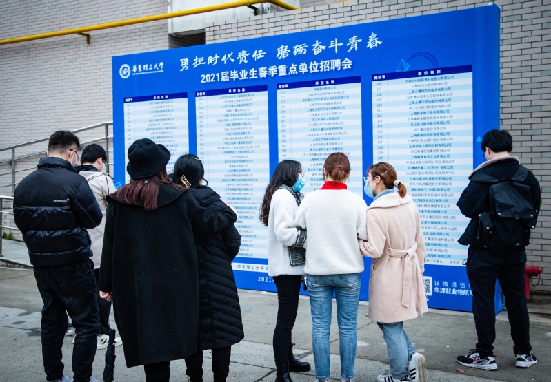 据悉,自本学期开学以来,学生就业指导服务中心先后举办了首场春季空中双选会、“华理智联”、科技类综合场等线上招聘会,万华化学、建发股份、华为、中建八局、宁德时代、上海银行、恒大集团、上汽集团、宁波银行等20余场名企线下宣讲会,活动受到了毕业生的欢迎和认可。机械与动力工程学院毕业生翟世宽说:“感谢学校举办的线下宣讲会和招聘会,为我们提供了与优秀企业面对面交流的机会,部分企业还能优先安排线下面试,为我们求职带来了极大便利,提高了求职效率。”后续,学校还将举办黄浦区单位专场、张江科技园区专场、济南人才、上海电气集团等多场线下招聘活动。此外,学校积极拓展外省市就业市场,赴温州等地参与线下人才对接活动,组织宁波、青岛人才引进等线上人才洽谈活动。目前,校院两级就业工作队伍正在积极行动,全力以赴,切实做好未就业毕业生的全面排摸和精准帮扶,想方设法推动2021届毕业生实现更加充分和更高质量的就业。