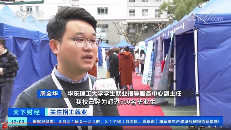 3月22日,央视财经频道和新闻频道分别推出报道聚焦上海招工就业,其中,重点报道了我校开展的就业帮扶工作。华理针对就业困难的毕业生制定“一生一策一导师”帮扶政策,自2020年春季至今,已帮助500余名就业困难毕业生实现成功就业。原文链接:https://app.cctv.com/special/m/livevod/index.html?guid=37eda98c72a2462894ed08526db3ce93&vtype=2&vsetId=C11346https://app.cctv.com/special/m/livevod/index.html?guid=b0dec94239194b2d80d8e0af988ade22&vtype=2&vsetId=C10616